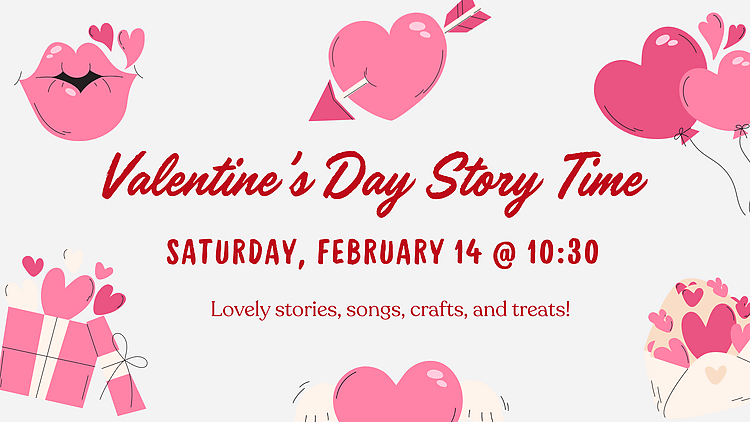Celebrate love and friendship at our Valentine’s Day Story Time! Enjoy sweet stories, lively songs, a hands-on craft kids will adore, and a special treat to finish the fun. Perfect for little Valentines and their families!