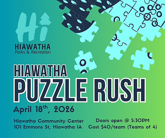 Get your thinking caps on and your fastest fingers ready! Hiawatha Parks & Recreation invites you to a night of strategy, speed, and teamwork at the Hiawatha Puzzle Rush. Whether you're a casual puzzler or a competitive pro, it’s time to see if your team has what it takes to piece it all together!