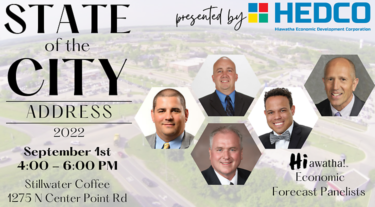 The Hiawatha State of the City Event, brought to you by HEDCO, will be held at Stillwater Coffee (1275 N Center Point Rd.) on Thursday, Sept. 1 from 4-6 p.m. As always, the City will highlight many of the past years accomplishments and present all the new and exciting things happening in Hiawatha.