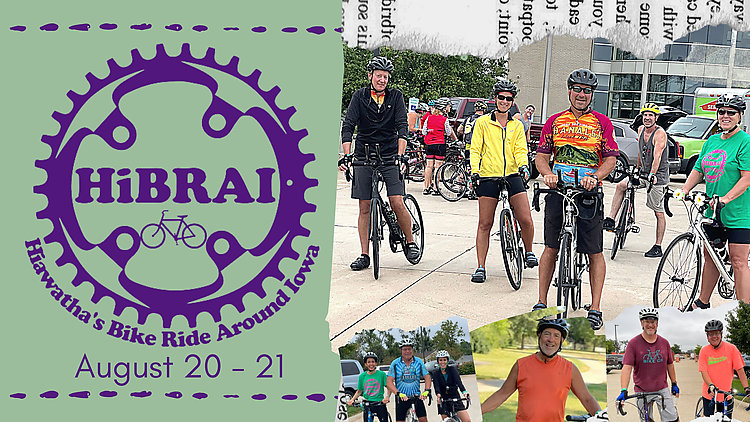 Join us for the 19th Annual Hiawatha Bike Ride Around Iowa (HiBRAI) August 20– 21! This 55-mile, intermediate bike ride will take us from Hiawatha south for an overnight stay at Riverside Casino & Golf Resort . HiBRAI has received a special rate for this event of $129.95 King or Double (usually $249.95)!!! Don’t miss out on this fun-filled charity ride to benefit the Friends of Hiawatha Parks and Recreation, a non-profit organization that supports children’s programs and park updates offered by the Hiawatha Parks and Recreation Department. Fully stocked rest stops will be frequent along this scenic route with snacks and lunches provided by many local sponsors. The registration fee is $50/person, late registration is $60 after August 5th. Support vehicles will be available for any emergency situations along with a Hiawatha Police officer riding the event.