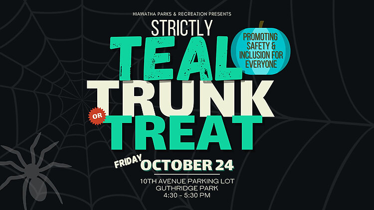 Join us for the 7th annual Strictly Teal Trunk or Treat on Friday, October 24, 2025 from 4:30 - 5:30pm in the 10th Avenue Parking lot of Guthridge Park!